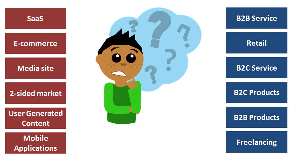 Wiele startupów nie do końca wie, w jakim modelu działają a generalnie warto to wiedzieć, bo każdy model rządzi się swoimi regułami. W skrócie mamy 6 modeli on-linowych: 2-sided market, SaaS, e-commerce, media site, free mobile apps i 6 modeli off-linowych: Usługi B2B, Retail, Usługi B2C, Produkty B2C, Produkty B2B i Freelancing. Jeśli chcesz zgłębić jeden z 4 modeli: 2-sided market, SaaS, e-commerce i media site to polecamy nasze szkolenie on-linowe o modelach biznesowy  🙂