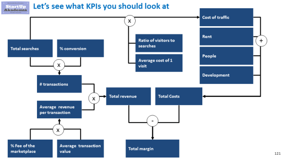 Dobrze jest przed rozpoczęciem dłubaniny w Excelu wiedzieć, jakie KPI będą dla Ciebie ważne i powiązać je między sobą. Dla przykładu poniżej KPI dla marketplacu